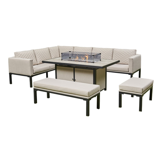 Corner Sofa Set, 2 Benches and Firepit. Grey or Beige