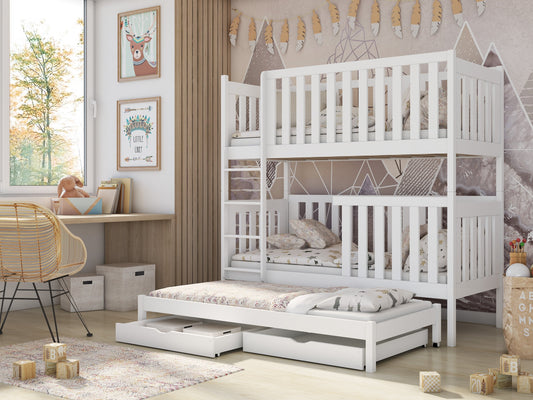 Wooden Bunk Bed Seweryn with Trundle and Storage