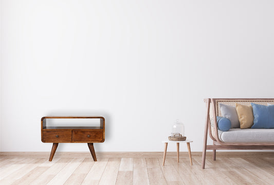 Mini Curved Chestnut Media Unit. 100% Solid Mango Wood