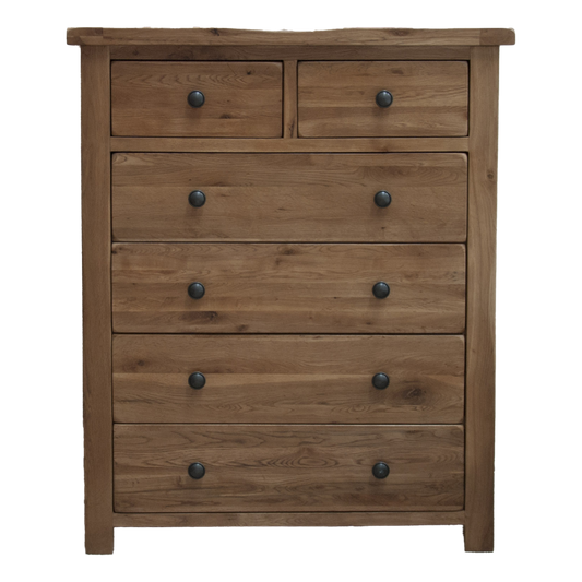 Rustic Oak 6 Drawer Chest 98cm Wide 100% Solid Oak