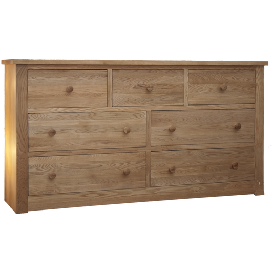 Torino Deep/Wide 7 Drawer Chest. 100% Solid Oak