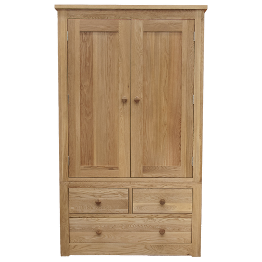 Torino Hinged Door/3 Drawer Wardrobe. 100% Solid Oak