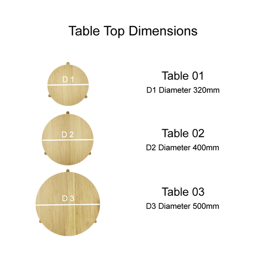 Scandic Round Nest of 3 Tables. 100% Solid Oak
