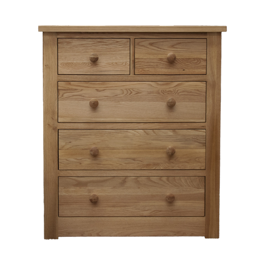 Torino 5 Drawer Chest. 100% Solid Oak