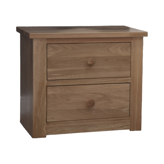 Torino 2 Drawer Wide Bedside Cabinet. 100% Solid Oak