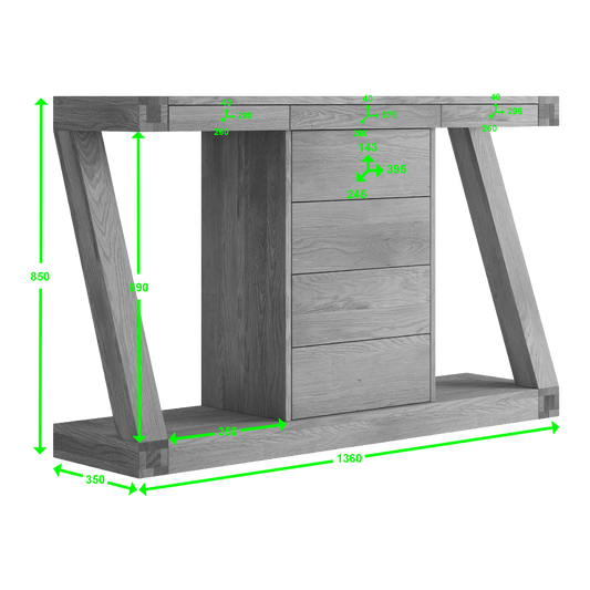 Scandic 8 Drawer Large Sideboard. 100% Solid Oak