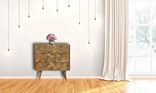 3 Drawer Zig-Zag Patterned Patchwork Chest 100% Solid Mango Wood